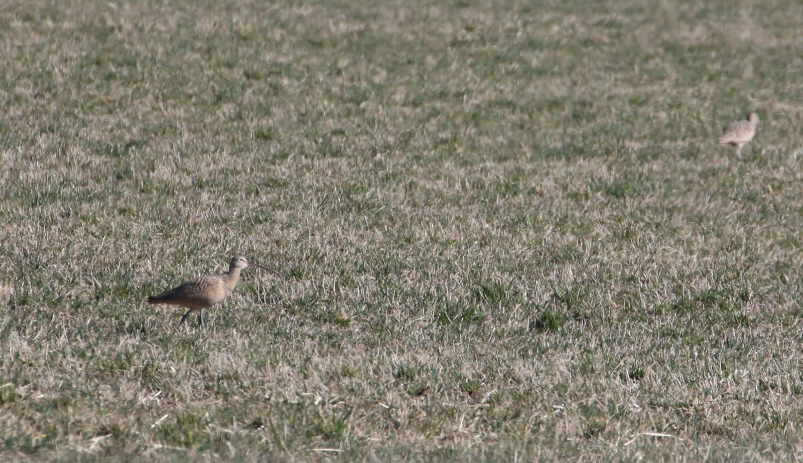 Numenius americanus) foraging in an ag pasture (they gave their ethereal song/call on a couple of occasions).